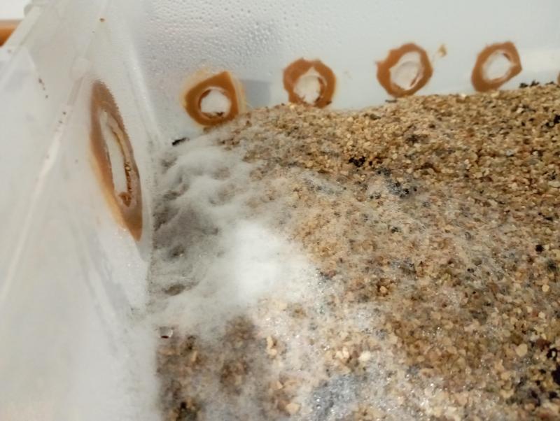 Alors oui c'est trop humide mais en plus je viens de voir que ç'etais aussi trop chaud, ç'etais a 32c, j'ai dû surélever la boîte du tapis.